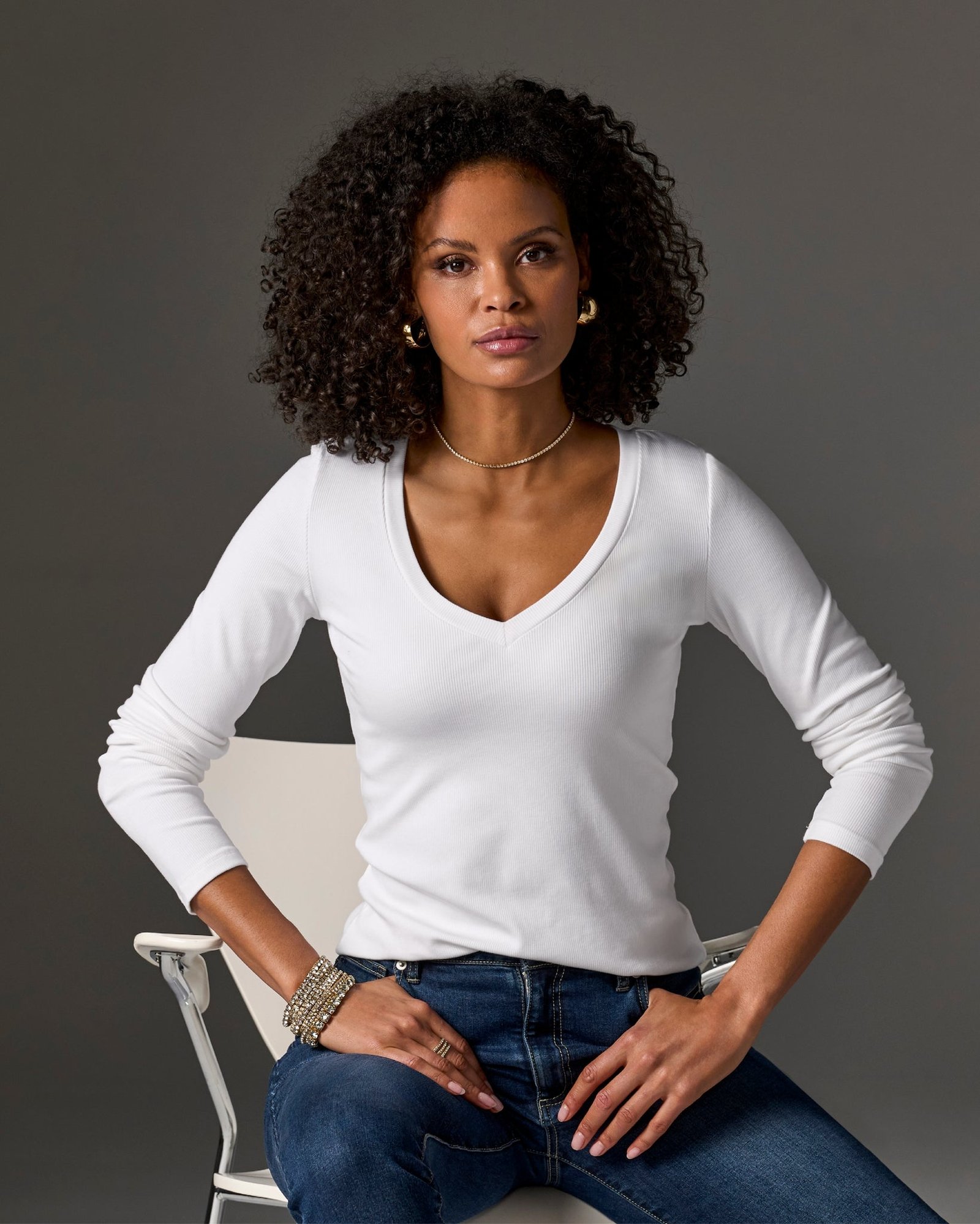 Effortlessly chic, this ribbed V-neck long-sleeve top adds comfort and sophistication to any outfit. A must-have essential staple for your wardrobe. Our So Essential knit fabric wears with ease in a smooth, flattering fit.